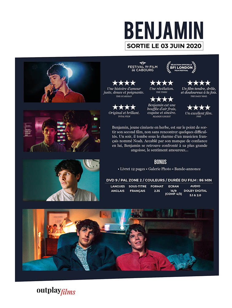 Synopsis : Benjamin, jeune cinéaste en herbe, est sur le point de sortir son second film, non sans rencontrer quelques difficultés. Un soir, il tombe sous le charme d’un musicien français nommé Noah. Accablé par son manque de confiance en lui, Benjamin se retrouve confronté à sa plus grande angoisse, le sentiment amoureux…