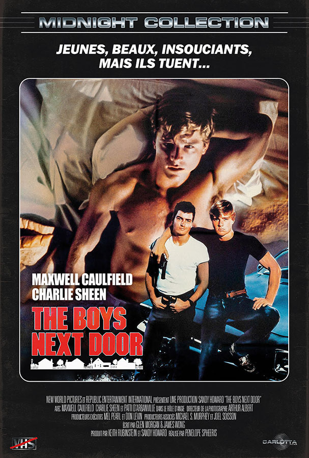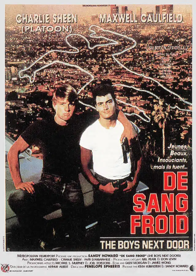 Roy Alston et Bo Richards, deux jeunes lycéens paumés, en situation d’échec, quittent leur bled pour quelques nuits, et font une virée meurtrière à Los Angeles. Les deux dingos qui assènent la bêtise du disque dur cérébral effacé, et la mort abjecte là où ils passent, sont aussi incarnés par des dieux vénérés par les minettes de l’époque. Charlie Sheen, fils de, au parcours de chaos hollywoodien aussi vertigineux dans son ascension que sa chute, et Maxwell Caulfield, à la carrière achevée quand elle démarra, par le bide monumental de Grease 2 en 1982, donnaient de leur image dans ces rôles physiques. Pour Caulfield, l’enjeu est important. Aux yeux des studios, il porte le poids du bide du sequel de Grease en succédant à John Travolta face à Michelle Pfeiffer. Le jeune comédien accepte The Boys Next Door (titre VO, sans référence cinématographique au classique de Richard Brooks) faute de proposition de studio. Ces deux-là sont des belles gueules de couverture de magazine, et pour Caulfield, la perfection du corps en plus, souvent exhibée en trophée par la caméra de la réalisatrice qui ne s’en prive pas, lui octroyait un charisme sexuel encore plus puissant. Dans sa monstruosité, De sang froid a un cachet sensuel et homo-érotique évident.