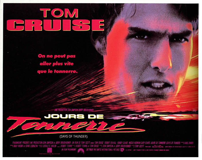 Doté d’une histoire passablement conventionnelle dont on peut prévoir la moindre inflexion, Jours de tonnerre bénéficie heureusement de superbes séquences de courses automobiles, sublimées par la science du montage de Tony Scott et son sens inné de l’action. Réalisées à l’époque sans l’apport de la technologie numérique, elles sont filmées pied au plancher par un cinéaste décidément très à l’aise avec l’aspect visuel. A la fois trépidantes et surtout toujours lisibles, les séquences de courses constituent donc le seul véritable intérêt d’un long-métrage sympathique à suivre, pour peu que l’on fasse abstraction de son usage immodéré de formules toutes faites.