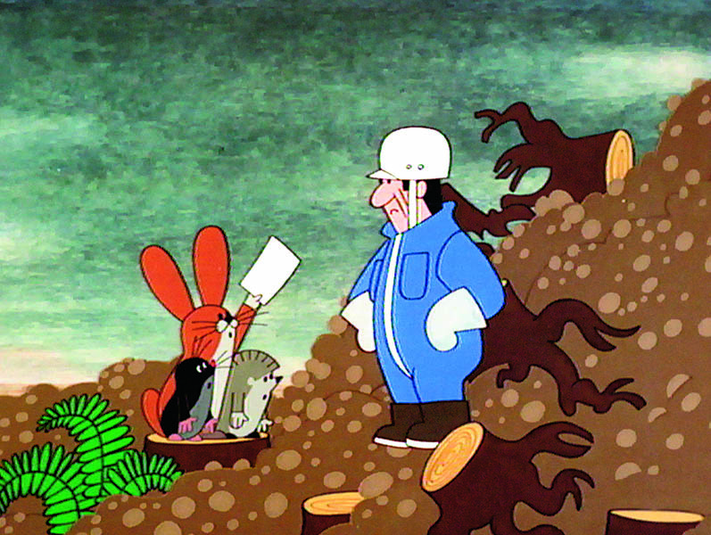 Zdenek Miler, créateur de l’animal culte aux fans répartis dans plus de quatre-vingt pays dans le monde et qui est célébré à Prague dans tous les magasins pour touristes, est depuis 2011 décédé. C’est donc toujours avec une certaine tristesse que l’on regarde désormais ces péripéties qui s’avèrent ici prophétiques. Les trois segments choisis pour illustrer le déconfinement par Les Films du Préau sont d’une cohérence remarquable, puisque dans les préoccupations de tous nos contemporains. Bétonnage, destruction de la biodiversité, déforestation, agression de l’animal par les petites choses de notre quotidien. Le premier court de 8min, sur la taupe qui essaie de se défaire du piège collant que représente un chewing-gum, est burlesque, digne de l’humour du slapsticks, et l’intrusion d’une vache placide y ajoute de la bonne humeur. Le second épisode qui met en scène la taupe en guerre contre la télévision d’un vieux agriculteur est également très évocateur.