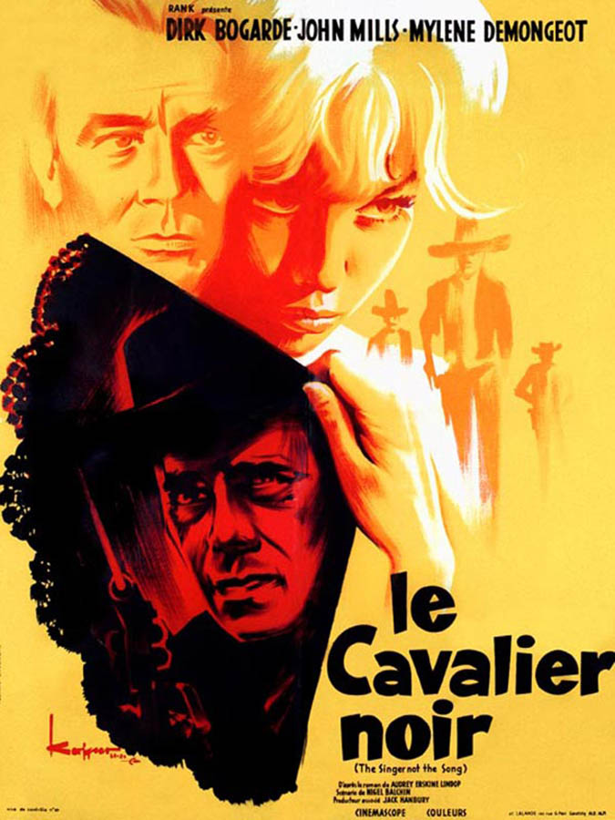 Critique : On connaît bien maintenant l’histoire de ce film singulier que personne ne voulait vraiment faire : le réalisateur peu familier de la religion catholique, Mylène Demongeot furieuse qu’on ait remplacé Charlton Heston (qui jugeait sans doute le rôle trop sulfureux) par le « vieux » John Mills dont elle avait du mal à penser qu’elle puisse tomber amoureuse, même à l’écran, et Dirk Bogarde enfin, qui devait interpréter un personnage pour le moins ambigu. Reste que ce Cavalier noir, existe bel et bien, avec son audace initiale ; qu’on en juge : un prêtre (Mills) débarque dans un village du Mexique tenu par un bandit, Anacleto (Bogarde), farouchement anti-religieux. Mais loin d’être un affrontement viril, leur relation évolue de manière surprenante pour l’époque, et peut-être encore aujourd’hui : Anacleto tombe amoureux du père Keogh, alors que celui-ci tente de l’amener à la foi. Qu’on ne pense pas qu’il s’agit d’un sous-texte, d’un implicite camouflé : le bandit est ouvertement gay et épris du prêtre (sa tenue de cuir noir très camp et des répliques limpides le montrent assez). À quoi s’ajoute une jeune femme, Locha (Demongeot), qui succombe également aux charmes du prêtre. Ainsi se constitue une sorte de triangle amoureux qui ne peut que déboucher sur un dénouement tragique.