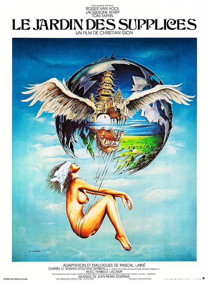 Le débat est sur toutes les bouches, et les opportunistes y voient l’occasion de faucher leur propre blé en adaptant les ouvrages les plus sulfureux… Vera Belmont, productrice de Vecchiali, Carné, Pialat, Boisset, Franju, Lanzmann, Giovanni, Téchiné, un monument dans le milieu, n’est pas contre un petit détour dans l’érotisme exotique pour s’enivrer du pétillant parfum de champagne que sabrait les producteurs d’Emmanuelle. Alors qu’elle ne trouvera le succès dans le genre qu’en 1980, avec le triomphe de Tendres cousines du futur cinéaste sulfureux David Hamilton, Véra Belmont décide de produire, en 1975, l’adaptation du roman inclassable, invariablement scandaleux, du romancier libertaire Octave Mirbeau. Le jardin des supplices paraît en 1899 et il faut bien un prix Goncourt pour adapter pareil roman monstre et monstrueux, avec toutes les libertés sur la narration, qui en font une adaptation que l’on peut qualifier indéniablement de libre.