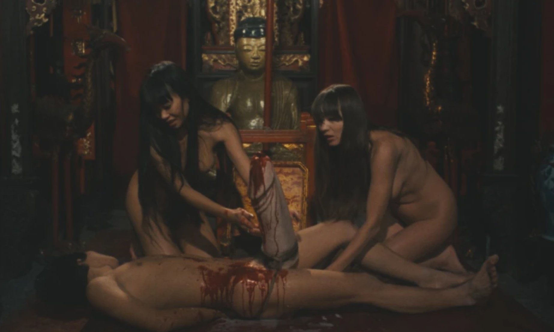Devant s’affranchir des codes du second degré, Gion est amené à intellectualiser l’horreur et se voit contraint de mettre en scène une gigantesque métaphore misanthrope qui vomit toutes formes de pouvoir. Les années 70 étant celles du corps libre mais qui se monnaie au box-office, le cinéaste se laisse aller à filmer l’érotisme exotique. L’acte sexuel est aussi déviant, comme requis par les rites iconoclastes des années 70, se laissant aller au sadisme vicieux, théâtral dans son portrait de la mise à mort, et malsain dans sa déchéance de la compassion humaine.