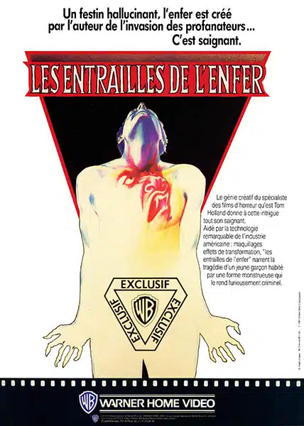 Ce qui deviendra Les entrailles de l’enfer (1982) est donc un mélange de plusieurs influences qui se télescopent au cœur d’une intrigue passablement fantaisiste. Si Tom Holland conserve l’idée d’un homme enfermé dans une cave et devant se nourrir de cadavres pour survivre, il y ajoute une malédiction indienne qui amène un jeune homme à se transformer en une créature géante avide de chair fraîche. Ajoutez à cela un viol inaugural par un être répugnant et un final du même ordre encore plus dégoûtant et vous aurez une vague idée de l’aspect complètement dingue du long-métrage.
