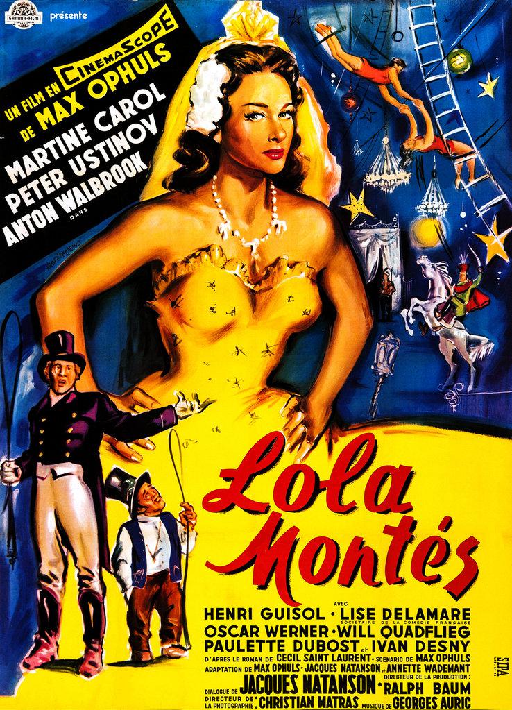 Synopsis : À la Nouvelle-Orléans, au milieu du XIXème siècle, un cirque gigantesque donne en représentation la vie scandaleuse de Lola Montès, alias comtesse de Landsfeld. Répondant aux questions les plus indiscrètes du public, sous la direction de son manager habillé en Monsieur Loyal, elle est contrainte de raconter dans quelles conditions elle a refusé pour époux le vieillard qu’on lui destinait, préférant s’enfuir avec le jeune amant de sa mère et comment, passant de lui à d’autres, elle connut des hommes célèbres, tels que Liszt, achevant sa prodigieuse et scandaleuse carrière en qualité de maîtresse attitrée de Louis, roi de Bavière.