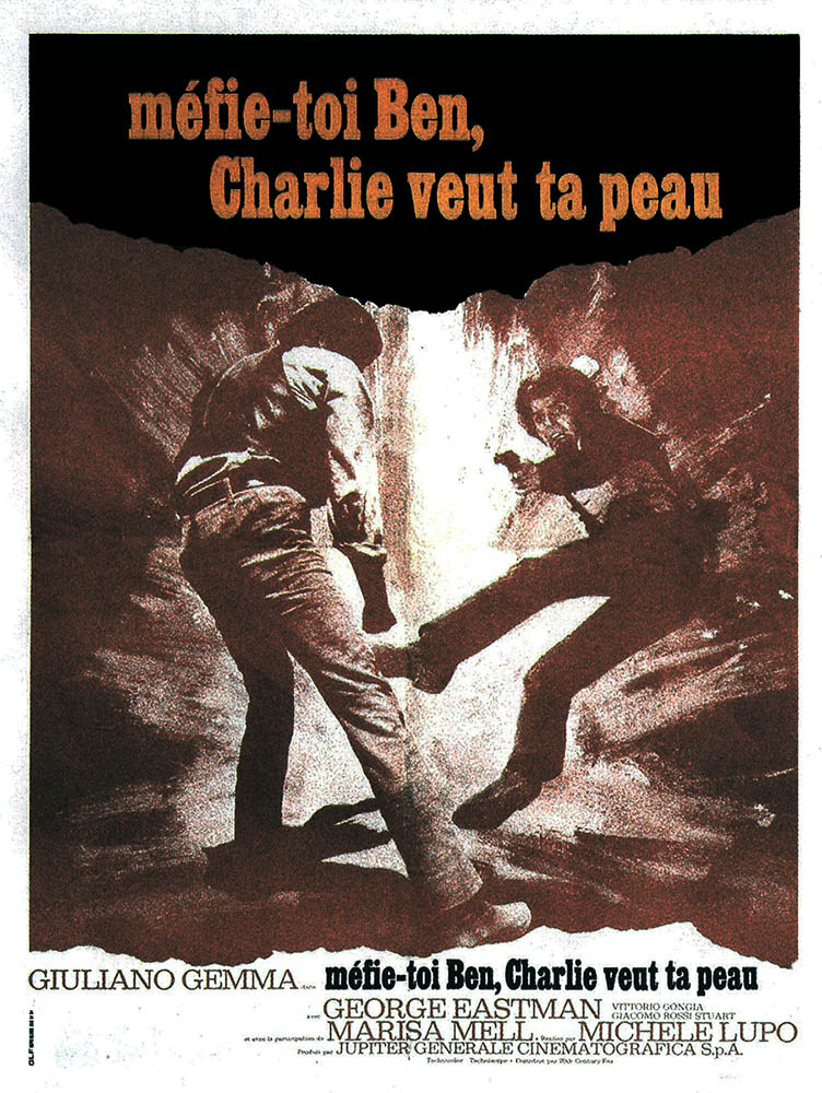 Critique : Méfie-toi Ben, Charlie veut ta peau est le second western de Michele Lupo, après Arizona Colt en 1966. Six ans plus tard, Lupo retrouve donc Giuliano Gemma. Ce dernier est toujours impeccable et se partage la vedette avec un des chouchous des amateurs de cinéma populaire italien, George Eastman. Néanmoins, si le charisme de ce duo n’est pas à remettre en cause, les limites du scénario peinent à rendre poignante cette histoire d’amitié. En effet, comme beaucoup d’autres westerns post-Trinita, le film ne sait pas trop ou se positionner entre sérieux et comédie. Le ton est inégal, et davantage de scènes dramatiques auraient peut-être été davantage indiquées. Ce ne sont pas les longueurs et le final un peu mièvre qui nous feront penser le contraire.