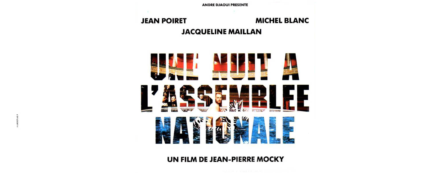 Trop vite sans aucun doute, à tel point que sa comédie sur le sexe Les saisons du plaisir (1988) sort sur les écrans au mois de février 1988 et que le réalisateur pouvait se vanter sur les plateaux de télévision d’avoir déjà un autre long-métrage sur la table de montage. Il s’agissait d’Une nuit à l’Assemblée nationale, tourné dans l’urgence afin de profiter de l’actualité politique d’une année marquée par l’élection présidentielle au mois de mai, suivie par les élections législatives en juin. Mocky positionne donc son prochain film en plein cœur de l’élection, entre les deux tours de scrutin, soit quatre mois seulement après le précédent, déjà pas fameux.