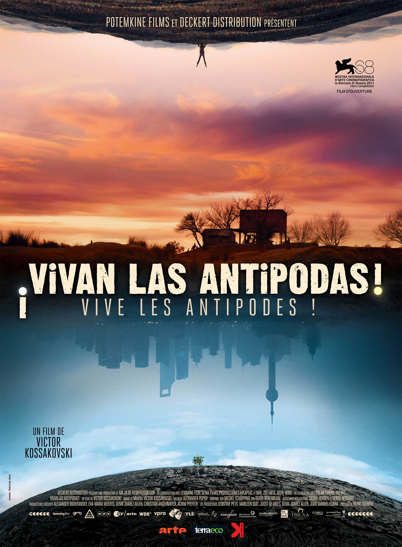 Synopsis : Un coucher de soleil magnifique à Entre Ríos, Argentine, vient télescoper la clameur de Shanghai, la mégalopole chinoise noyée dans le brouillard. Quel est le chemin le plus court entre ces deux lieux ? Tout simplement une ligne droite qui passe par le centre de la Terre, car ce sont des antipodes, des points de la surface terrestre diamétralement opposés. En allant filmer huit antipodes – Chine et Argentine, Espagne et Nouvelle-Zélande, Chili et Russie, Botswana et Hawaï –, le cinéaste russe Victor Kossakovski a capturé des images et des sons qui renversent le regard que nous posons sur le monde. Vivan las Antipodas! est un film-poème, un pari fou où se mêlent et s’entrechoquent peuples, faunes et flores des quatre coins de la Terre.
